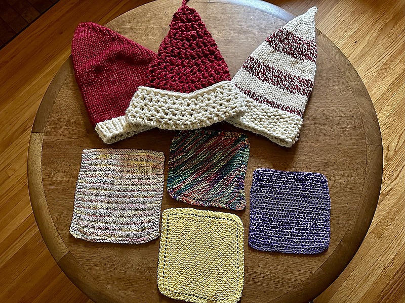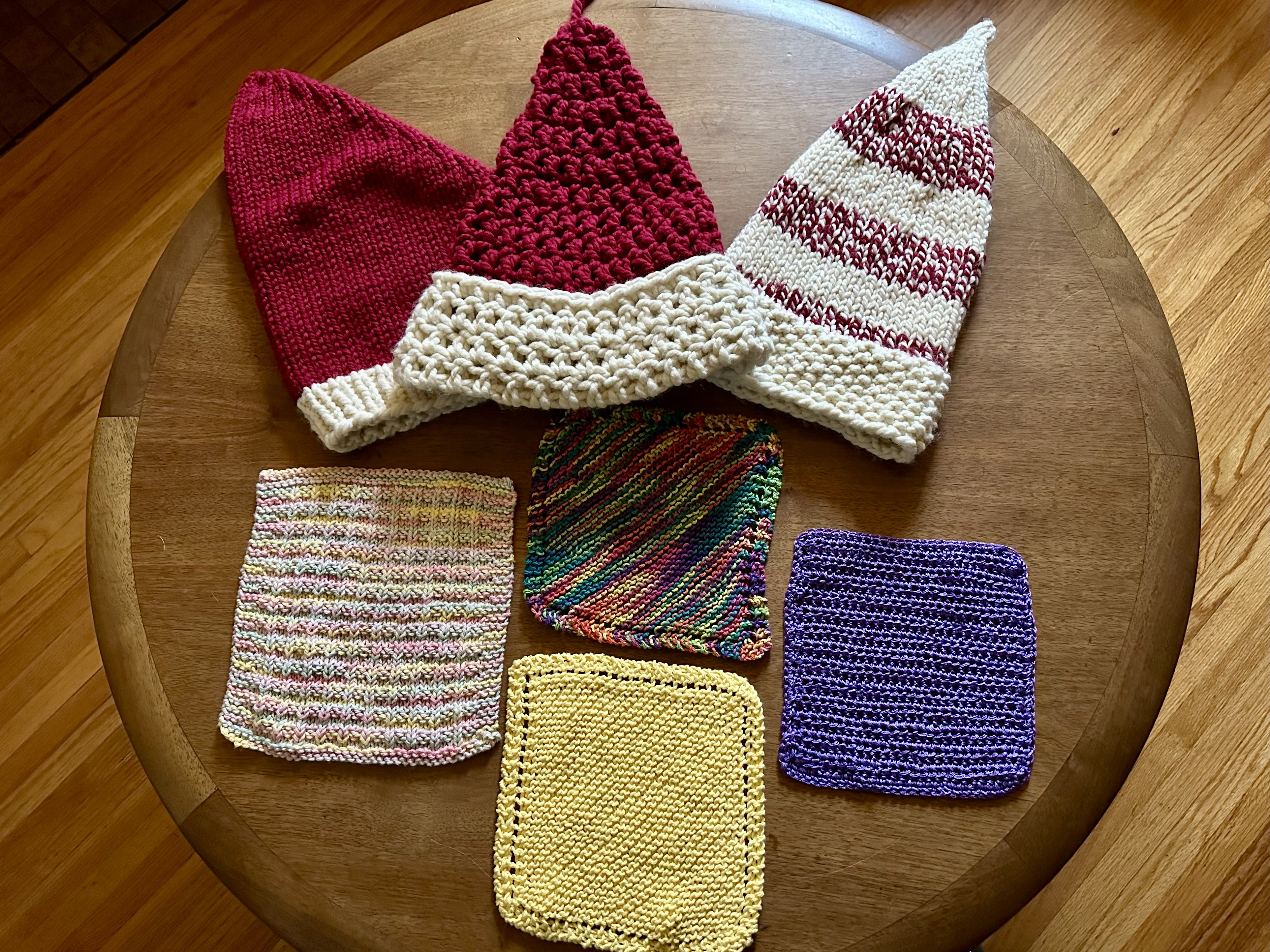 During my week break I made three Santa hats (1 crochet, 2 knit), completed 3 partially done dish cloths and knit the pastel waffle weave dish cloth from start to finish, read a non-fiction library book from start to finish, read part of another book, decorated my house for fall, and reorganized the pantry. The Santa hats still need pom poms but I’m going to do that all at once after I make all of the hats.
