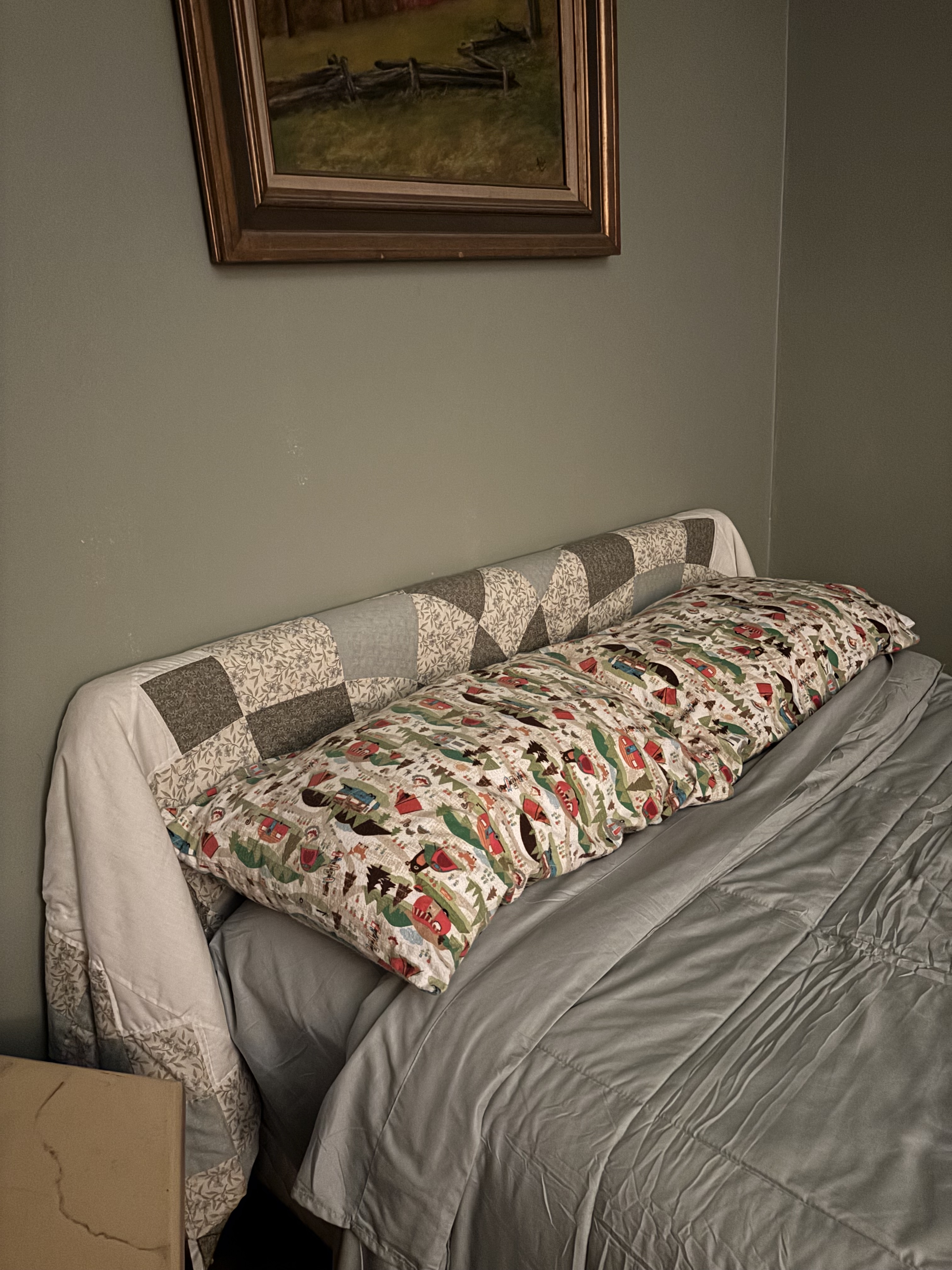I too have a quilt on my headboard! I wish my headboard was taller as the bed is against an outside wall that gets very cold here in Michigan