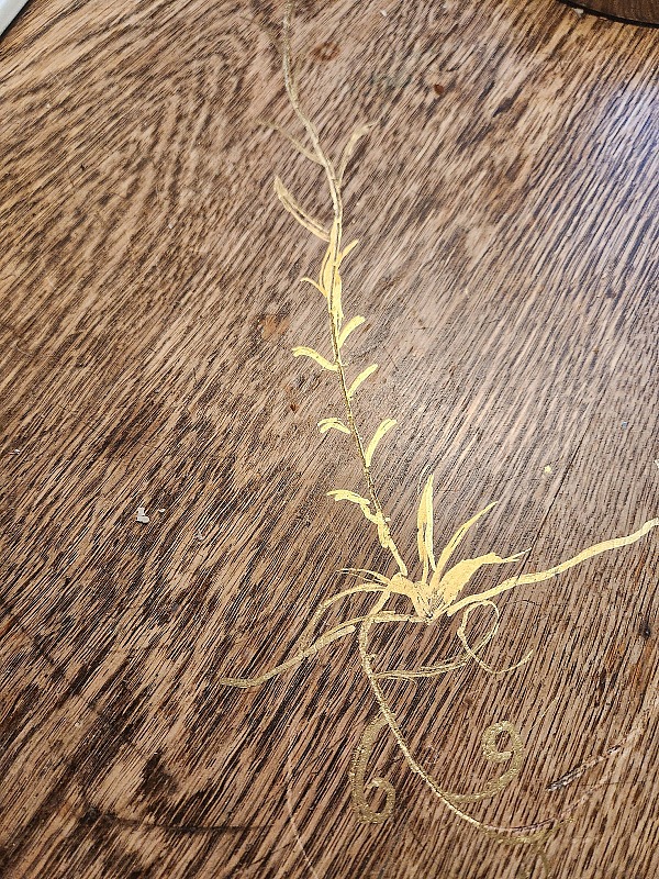 I have had a lovely 1920s or 30s table for maybe 30 years and have always loved it, not despite of the knife cut marks on it or the rings or whatever but because of them, because it showed the marks of life from so long ago. Last year, however, my son tried to stand on it to fix a light but it wasn't strong quite strong enough for that. I thought I was going to have to get rid of it but I had a friendly handyman here and he offered to fix it so he did by adding some bracing. Sturdier than ever now but unfortunately while he was drilling to secure the braces the drill must have slipped and moved across the table top leaving a rather deep gouge. I tried to accept it as just adding more character but it wasn't quite working.