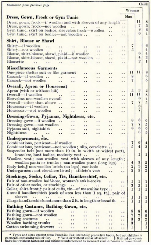 I used the last of our ration of clothing coupons on new pyjamas for our growing grandsons. I have pretty fabric bags to put their presents in, which my daughter returns afterwards. When the last of the gift wrapping paper runs out I shall use the stout brown paper saved from the chicken feed sacks. I have more than enough clothes stored away, items which fit once more, and doing the ration book challenge made me think about new purchases. This is the updated list from September 1941, there were 60 coupons each for the year. For decency, I did need a new bathing costume, synthetic fabric does not last, and I bought a warm waterproof coat in the sales last month. I darned two tiny moth holes this week using matching embroidery thread, so a wool hat and jumper are as good as new.