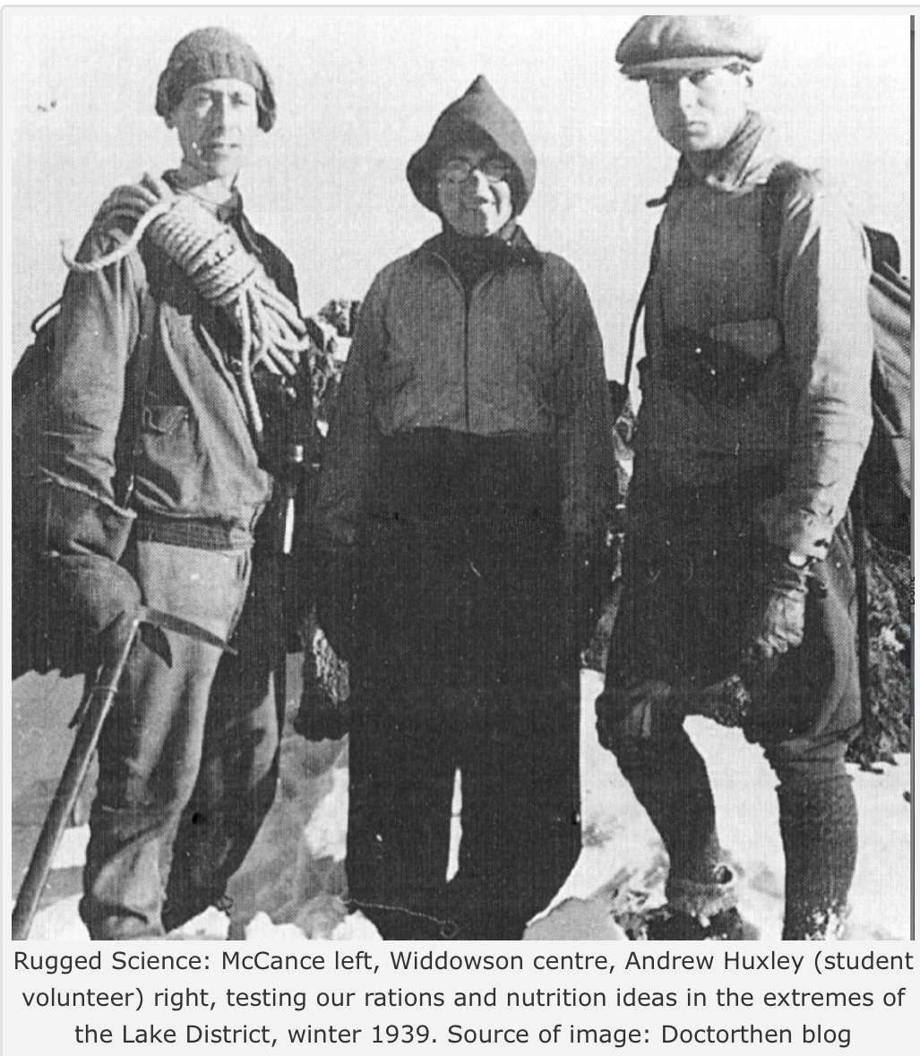 In 1939, researchers from University of Cambridge, Drs. Elsie Widdowson, and Robert McCance, and Professor Frank Engledow tested a diet of solely British produce that could be sustainable on a national scale and be healthy for each individual. The diet needed to be highly nutritious to meet the energy requirements of demanding wartime labour in factories and on the land. Their research led also the wartime National Loaf being fortified with essential mineral calcium carbonate.