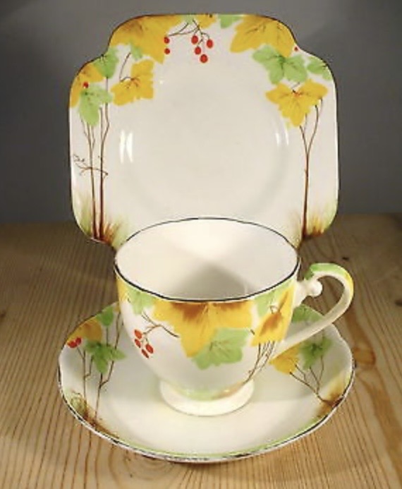 “This is the tea set my grandmother gave to me. It is from 1932. The cups are a "tulip" shape. I've never seen another one like it.“