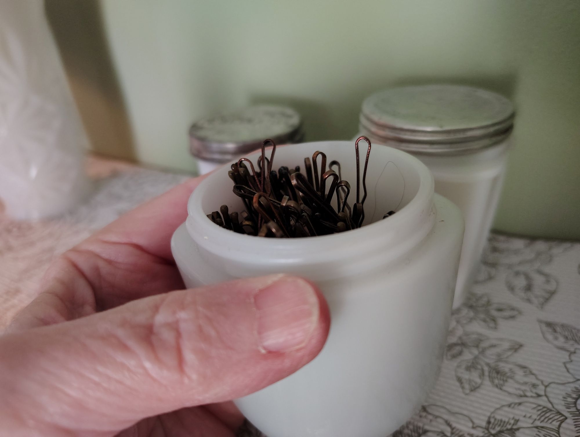 Rose M, my mother used ponds cold cream and when I got old enough to wear makeup I used ponds cold cream (cleansing cream).  We used it to remove our make up and clean our face.  Then there was ponds vanishing cream which was to soften and moisturize the skin,  The cold cream, we used for cleansing leaves the skin moist and so often do not use the vanishing cream which now through the years is mostly called dry skin cream moistening face cream.   During the late 1950s one of my school friends used Noxzema and I asked my mother to buy me some Noxzema but after a short while I went back to ponds.  I have used other brands of face cream through the years but always find my way back to ponds.  I keep bobbie pins in one of the old ponds milk glass container.  Ponds was sold in milk glass jars for many years.  Today when I buy the face cream I remove it from the plastic jar and put it in one of the old milk glass jars.
