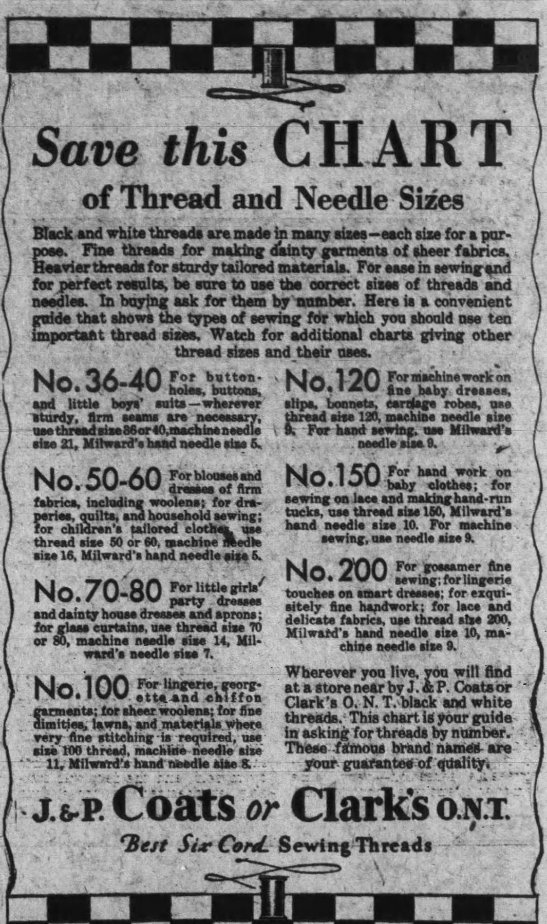 I found a 1930 Thread and Needle chart.  I do not know if the numbers have changed during time.  If someone knows if these numbers have changed please let us know in the forum.