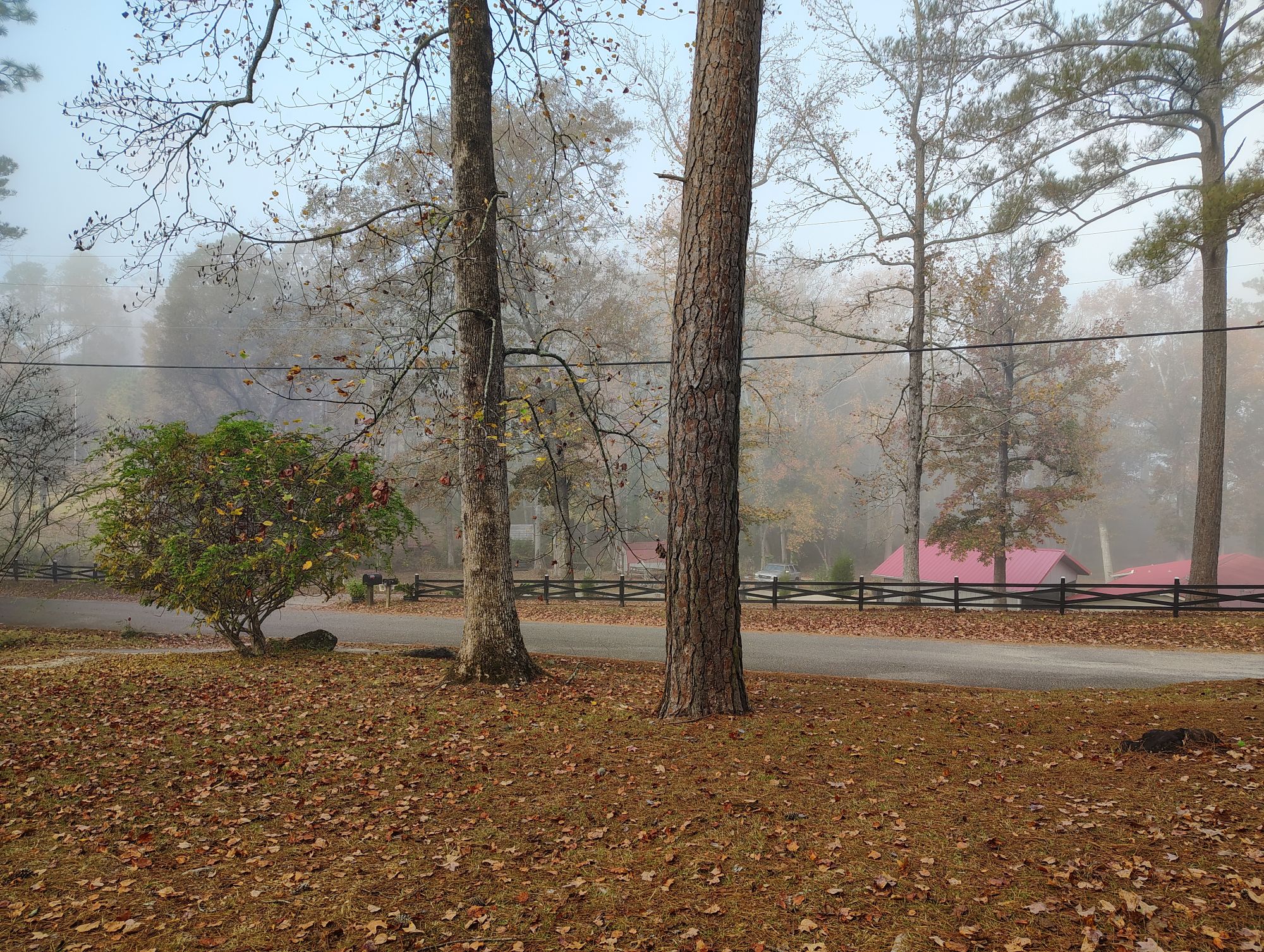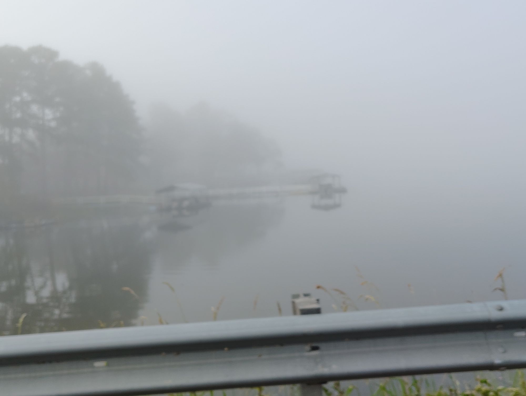 It was very foggy and we could barely see the houses around the lake, this is an area there are no fast food places and more like it was in the past.  I thought about the money that Charles and I have saved since we learned to feel hungry again.