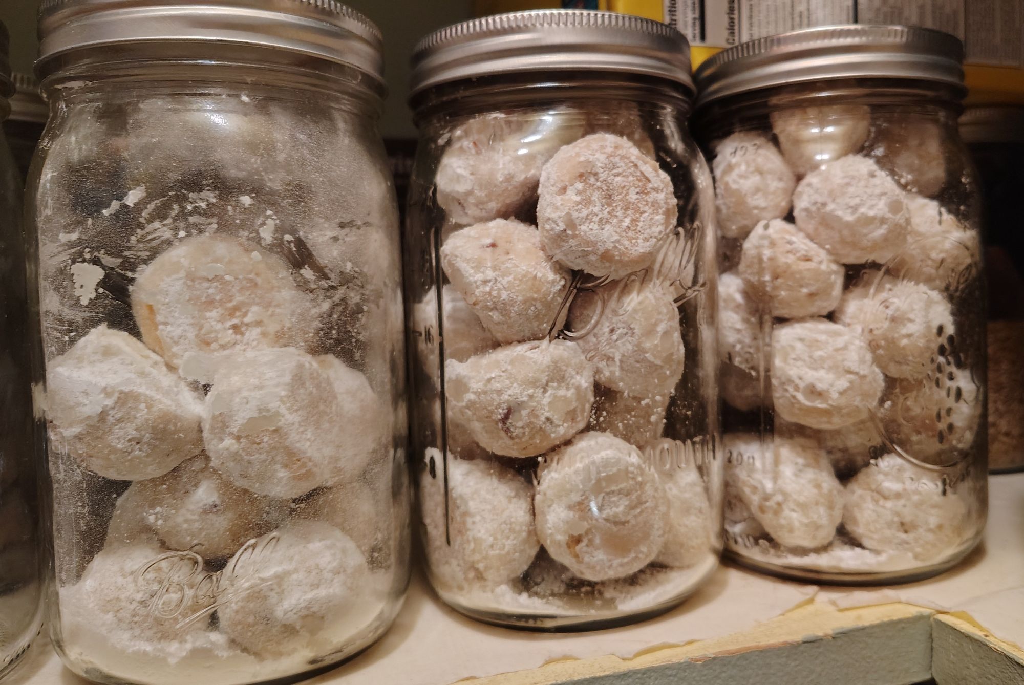 Our daughter and her family came up from Florida for a visit last weekend and we enjoyed them being here so very much.  We had an early Thanksgiving meal together and we finally met our Grandson's girlfriend.  They make a lovely couple. :)  We laughed a lot trying to do as much together as we could in a short amount of time including trying to teach both of them how to drive a stick shift on our old truck.  We made our family special cookie for the occasion along with a cream cheese pound cake.