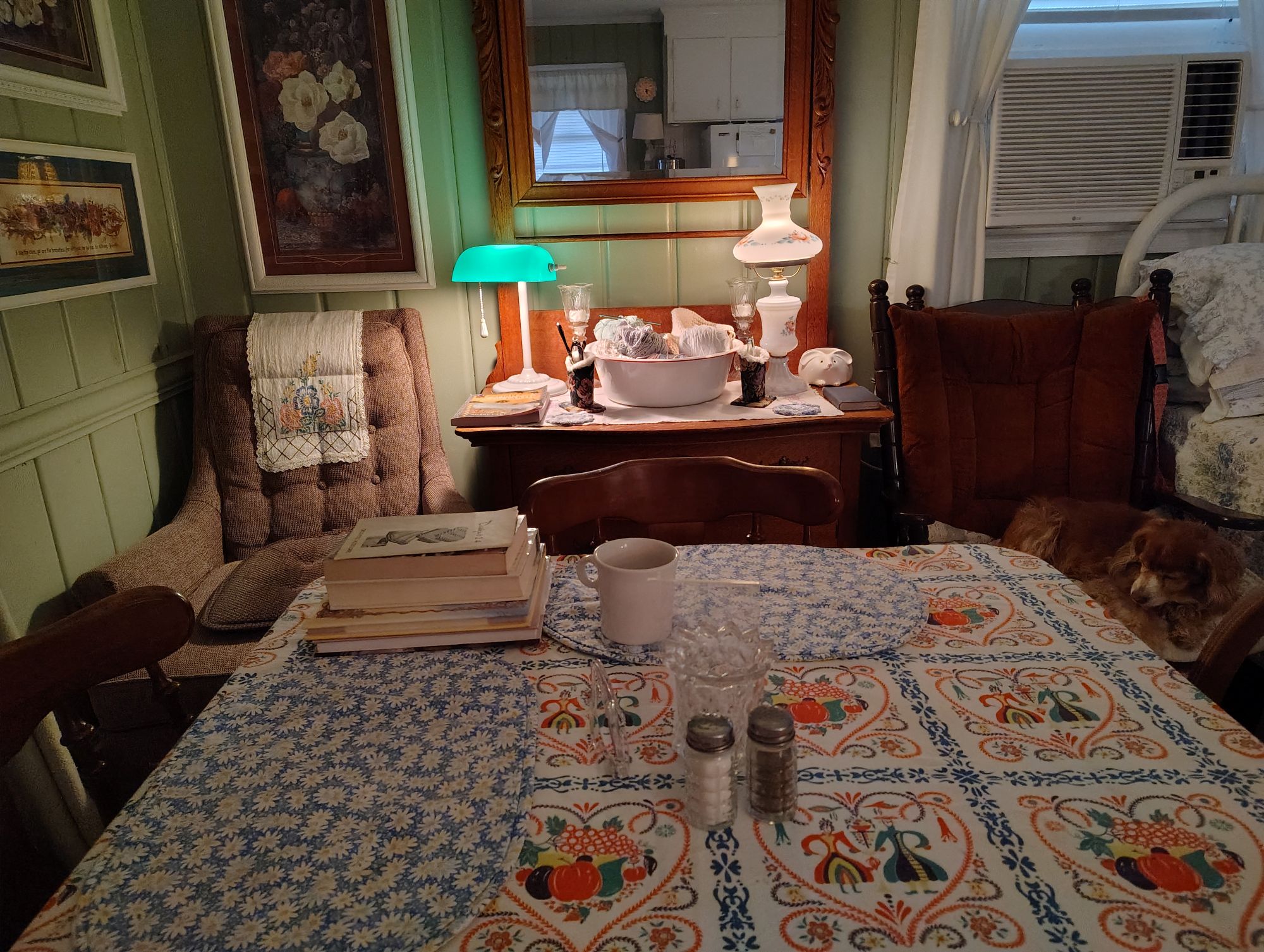 Now we are getting older, and since we moved our bed into our kitchen/dining room and turned it into a little flat/apartment to save money on heating and cooling, we have discussed how it is really better this way because we can take care of the other if our health changes. There is more stimulation, cooking smells, and communication.