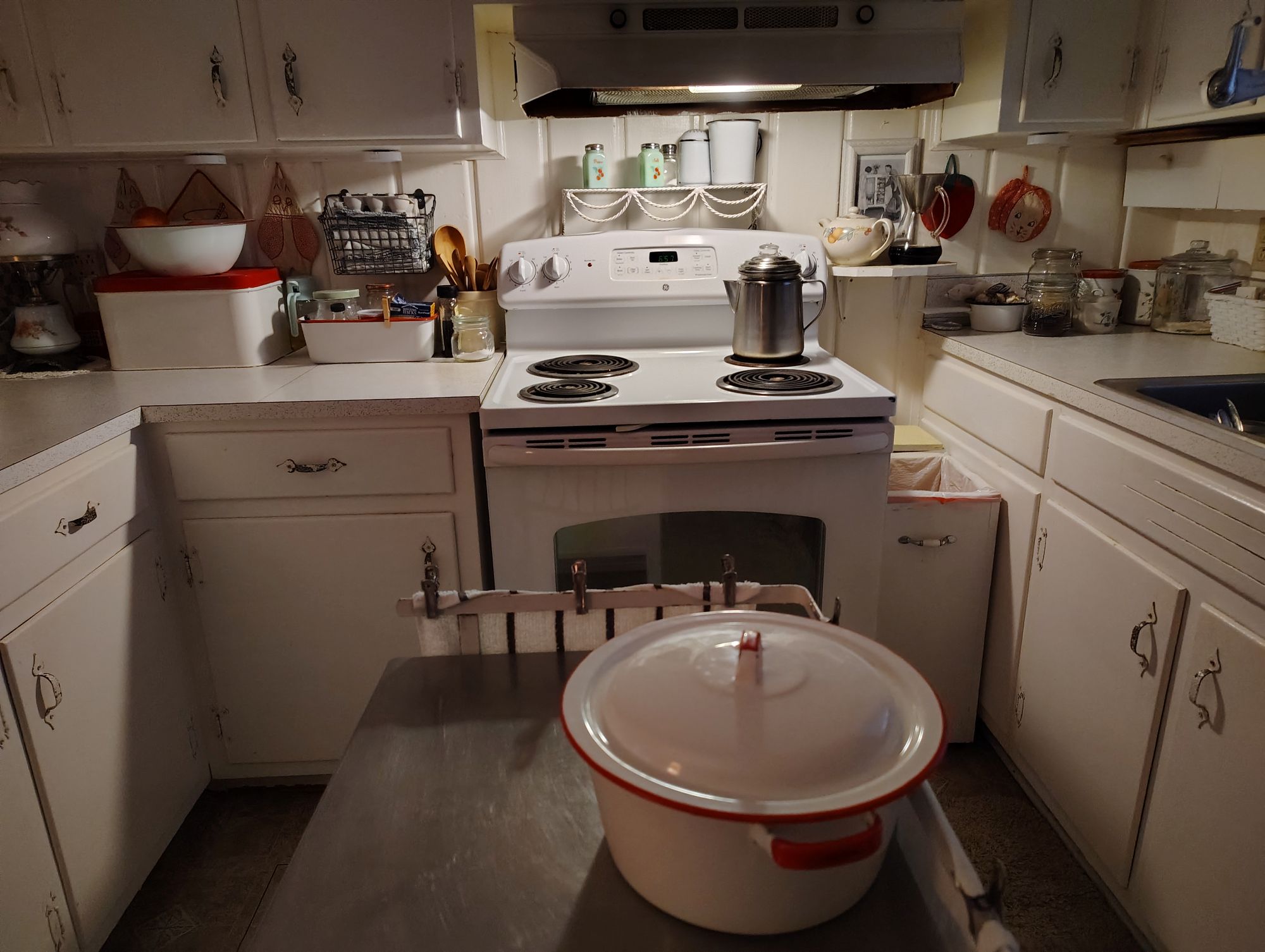 Our kitchen is functional for us. I keep things on the counter for easy reaching because I am very short and reaching up to the cabinets is difficult.