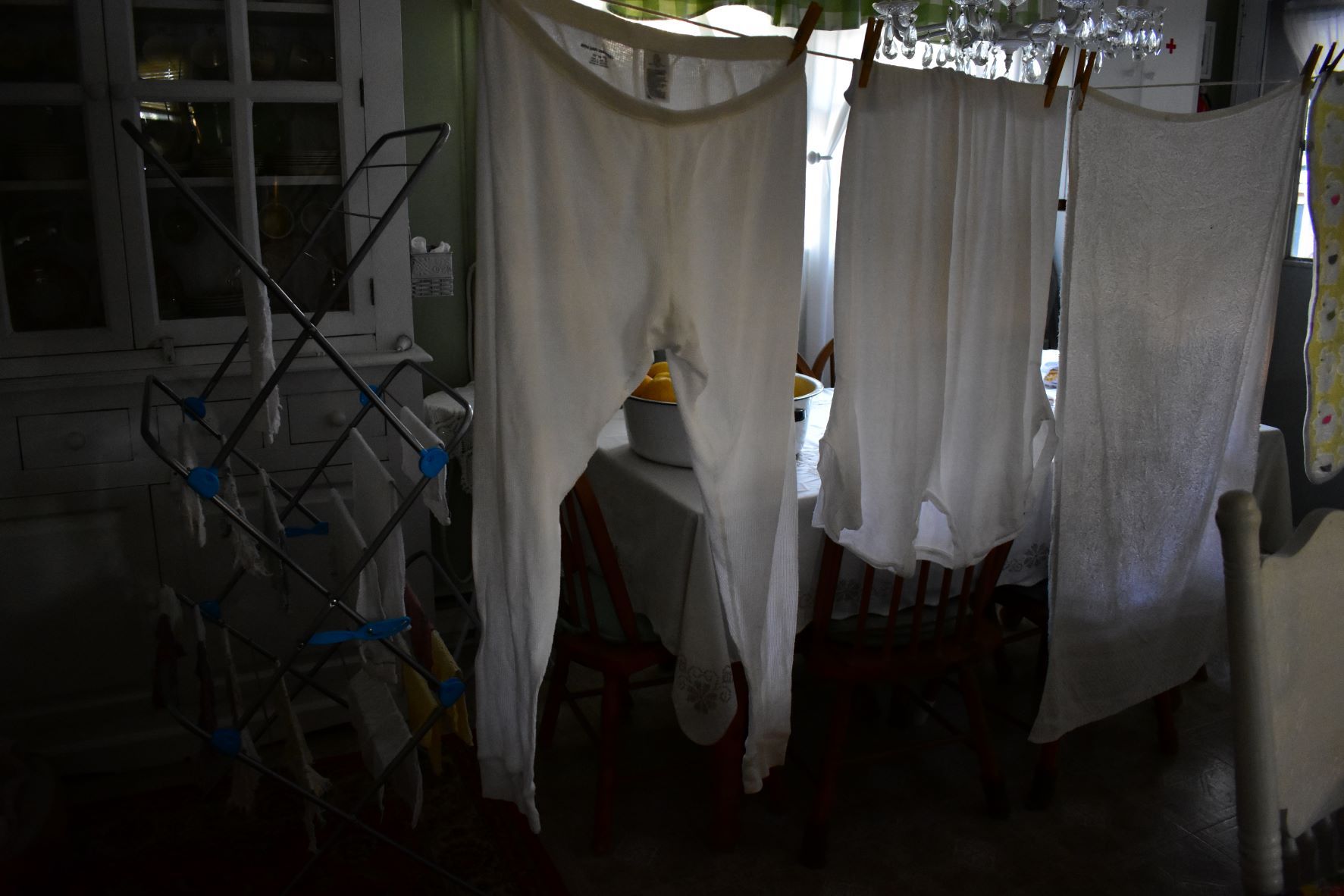 It does not matter that we are hanging our laundry all over our house, this is our home. We decide to not take the easy way so we can save money.