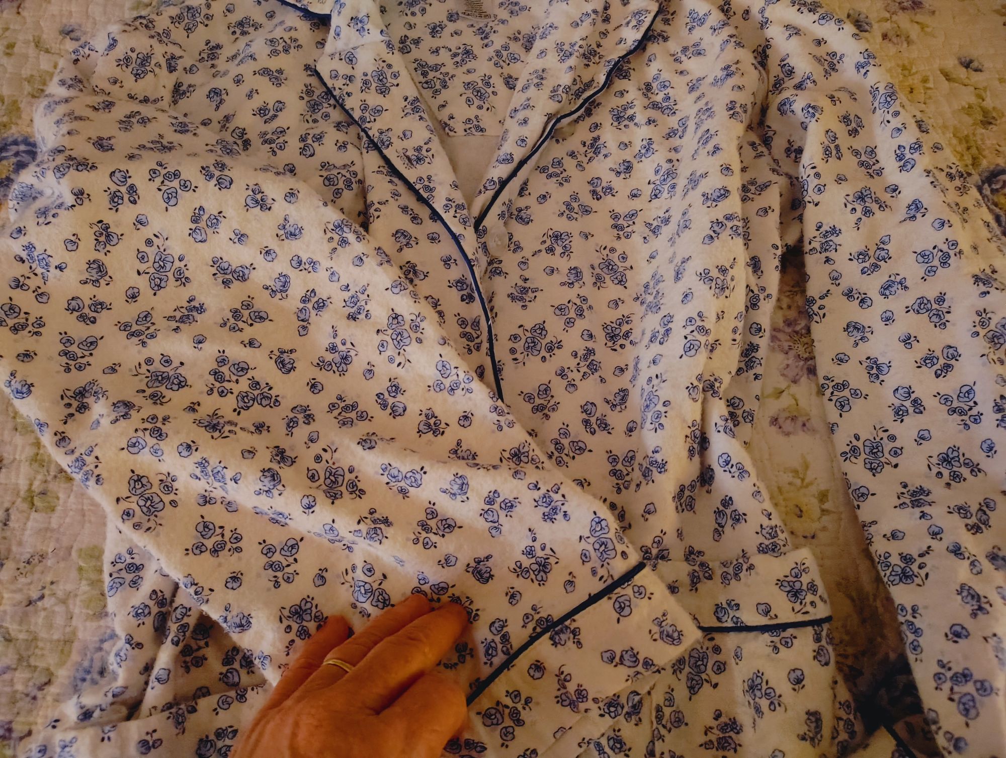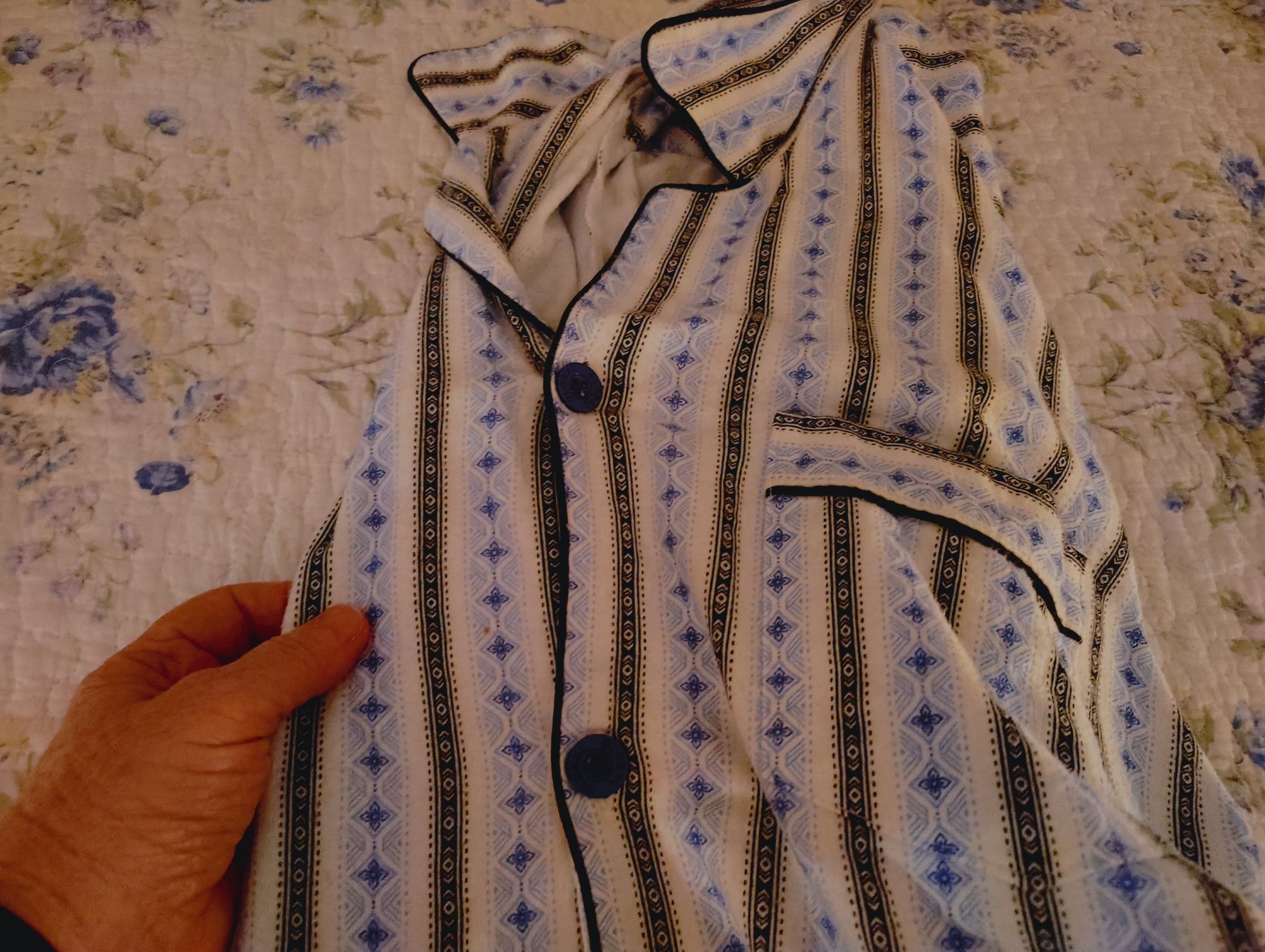 Each of us a pair of thick flannel pajamas, This above is Charles new flannel pajamas.