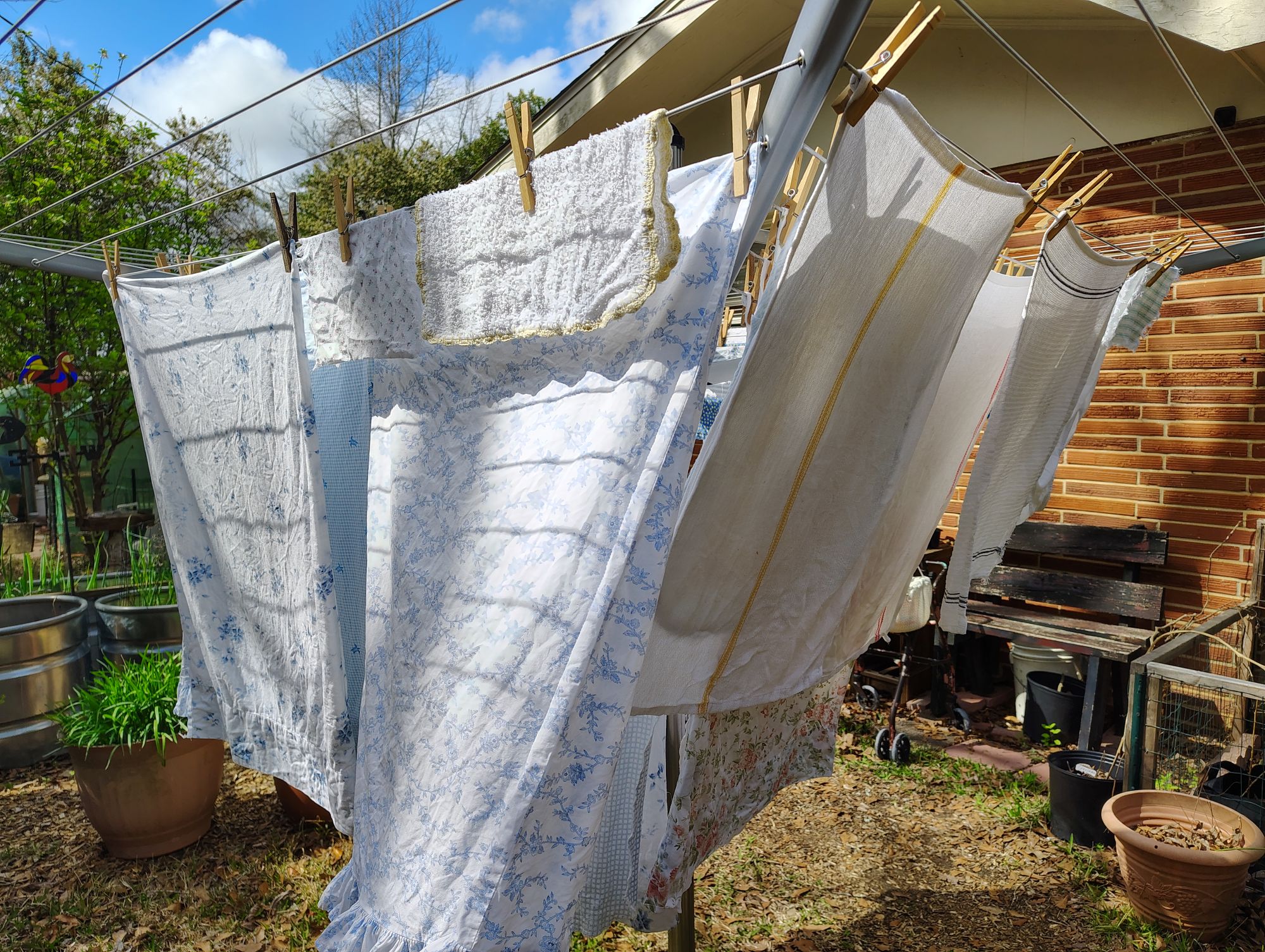 As far as the 1942 study goes, our life here in this city that we live is very similar to 1942 here in our home.  Not outside our driveway but here in our home.  Our washing machine looks different and we do have a clothes dryer but we only use it for emergencies of sickness or extreme weather.  Otherwise I hang out our laundry on the outside line or the inside lines and racks.  We are using as little modern items that we can, trying to be more like 1942.