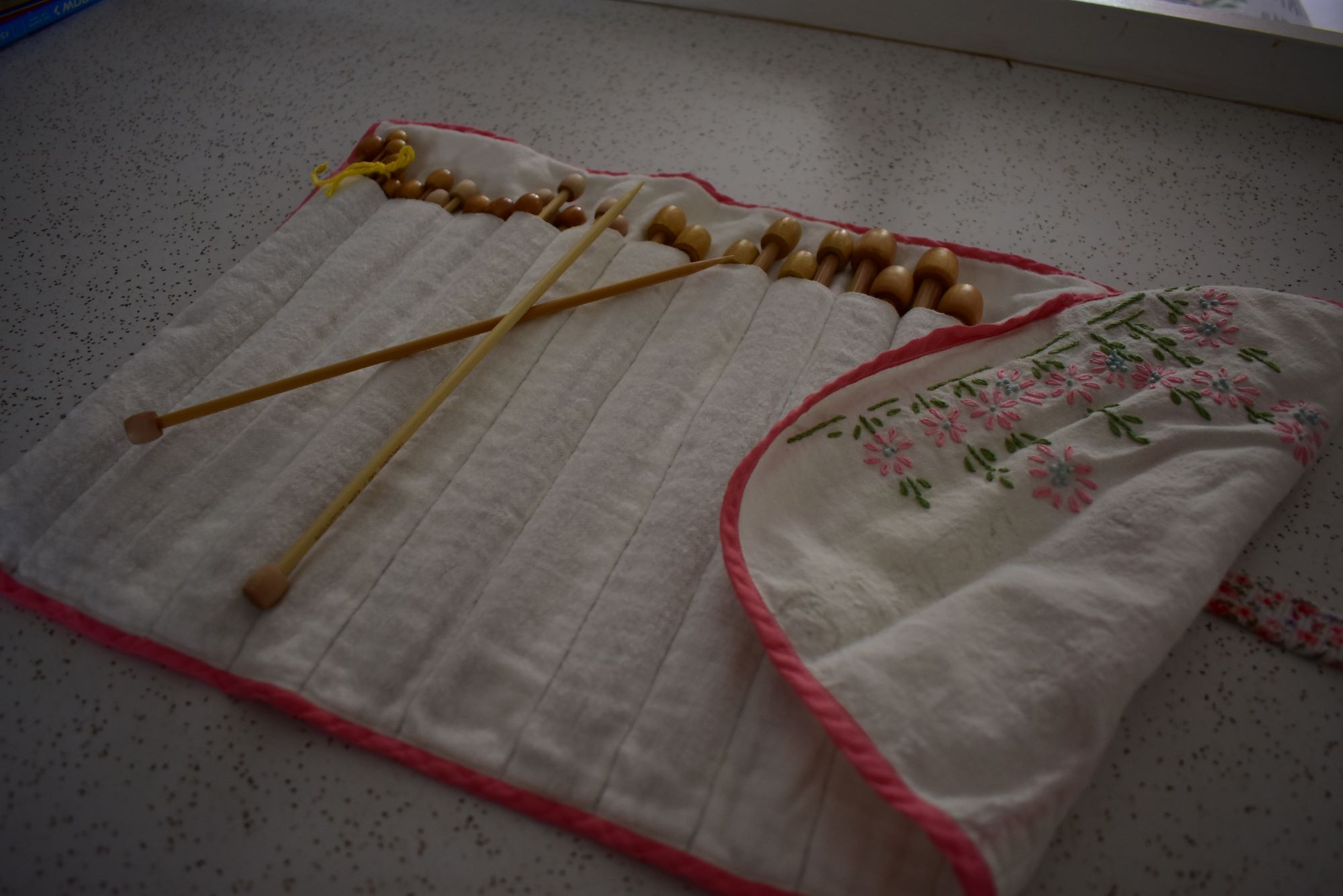It can be repurposed items such as this cloth embroidered vintage silverware holder that I turned into a holder for my knitting needles. :)