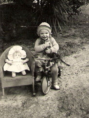 The photo is my son and myself. Now days you can get a photo made to look old like this one. This photo was taken when this was the new look.