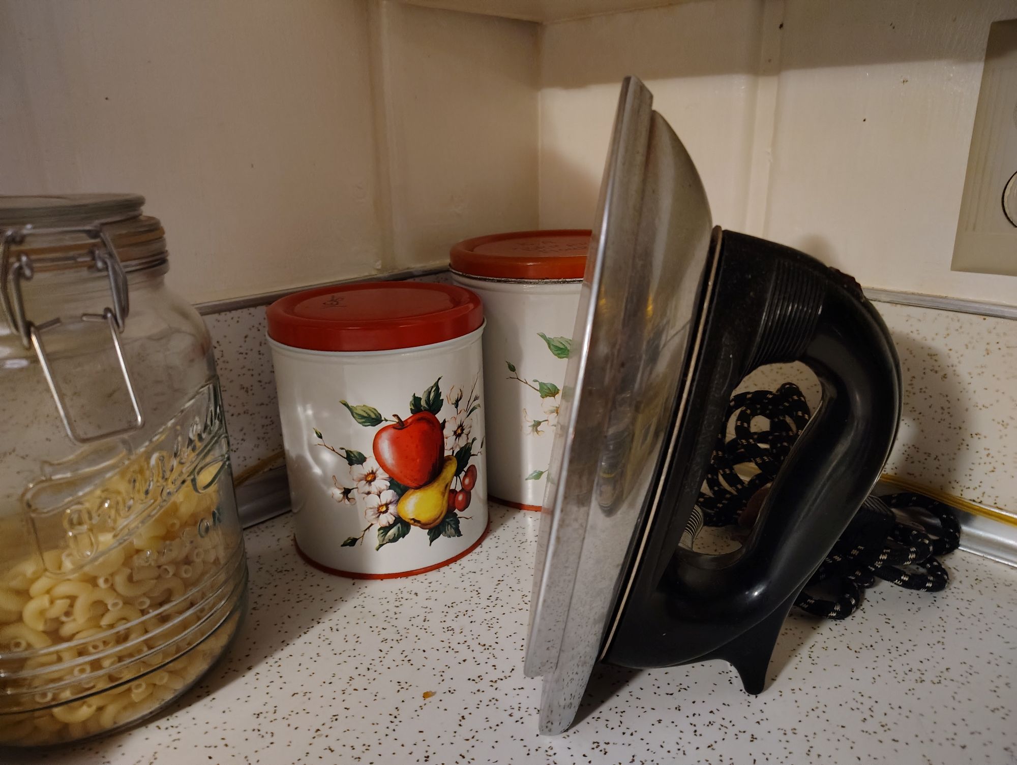 People were particular with their clothing, and linens in 1942.  It would have been improper to leave the house to go shopping without dressing properly.  Ironing was part of the weekly chores and normally there would be clothing, bed linens, handkerchiefs, table linens in the ironing basket.