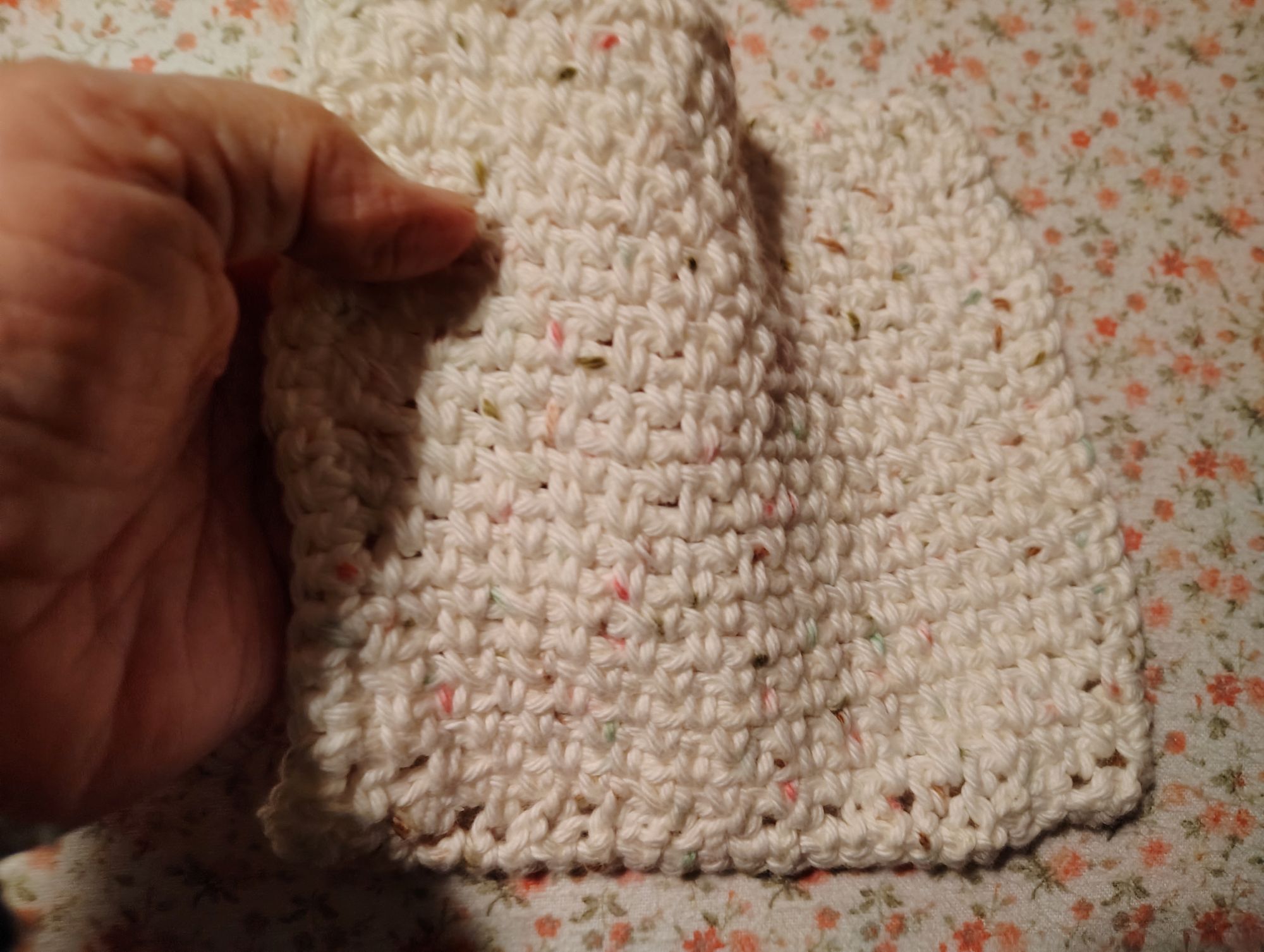 This above is a "crochet" soft baby washcloth. We cannot purchase the same yarns as they had in 1942 so I am using cotton yarn as we have today.