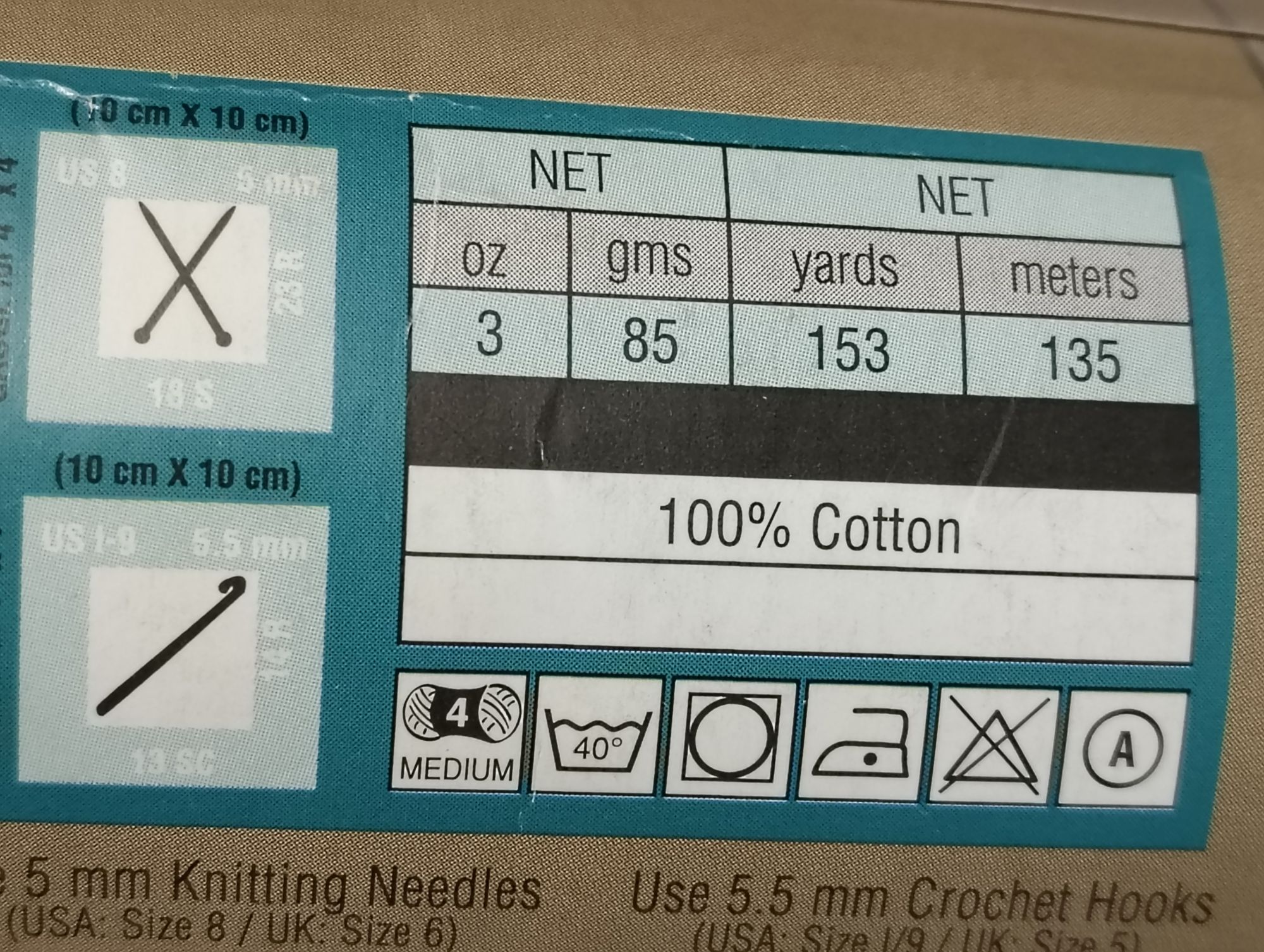 The baby washcloth yarn I am using is called  "I love this cotton" 100% cotton and I used a size H/8-5.00MM hook.  I will link the video that I used to make this washcloth.  You can adjust to the size you want for baby or for adult.