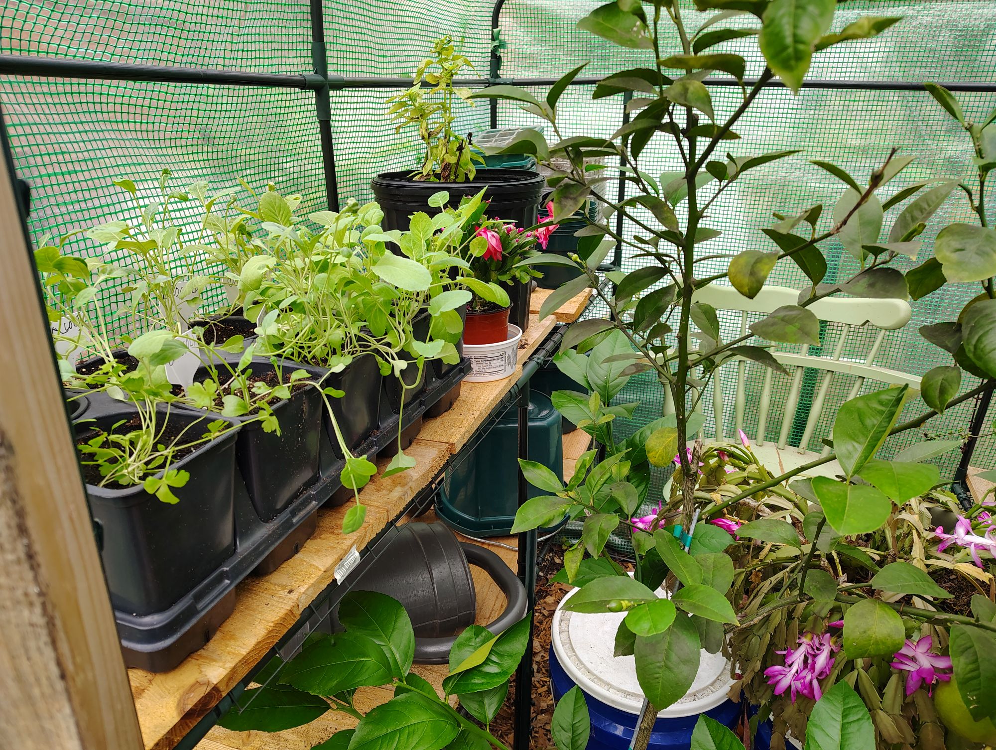 I need to pot these seedlings to give them a chance to see if they will grow in the greenhouse. We have been pulling the small lemon tree in the greenhouse and then out of the green house depending on the temperatures.