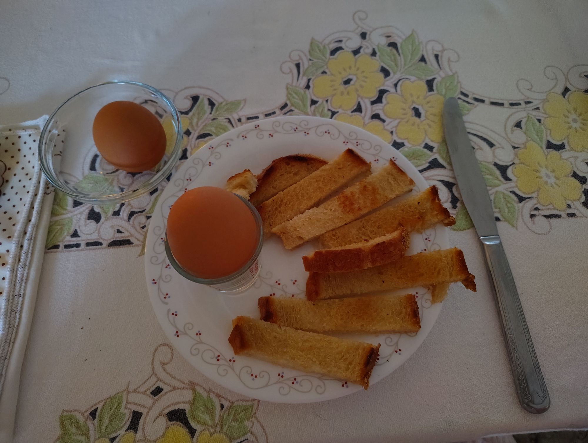 We are making the old meals from the past, not that we ever stopped but we haven't had the soft boiled egg in a while and the toast cut in a way they call soldiers.