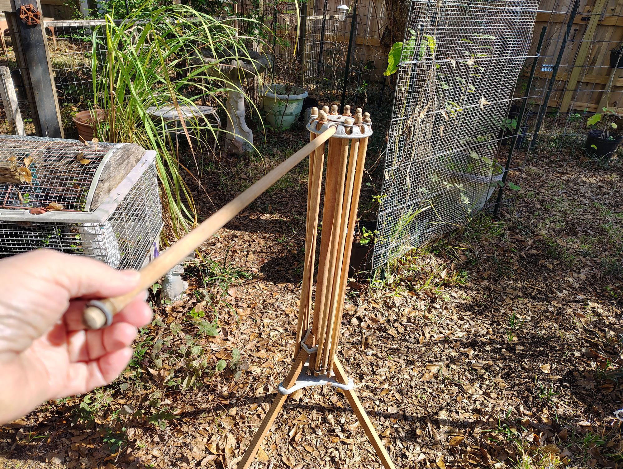 These dowels pull out and rest in a center holder..