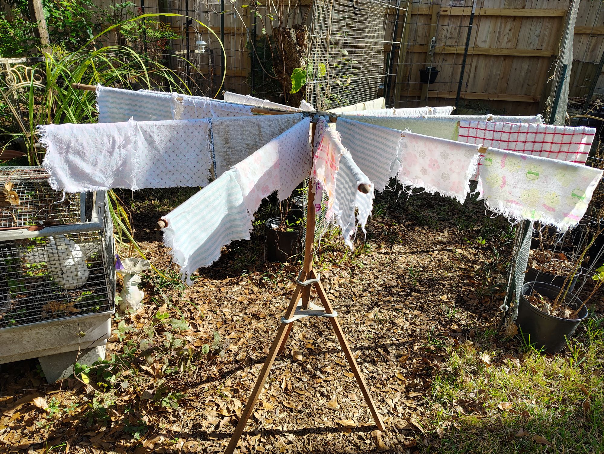 This particular day I was hanging some old cloths that I use to keep from spending money on paper towels. I do not hem the edges and have worked well for many years.