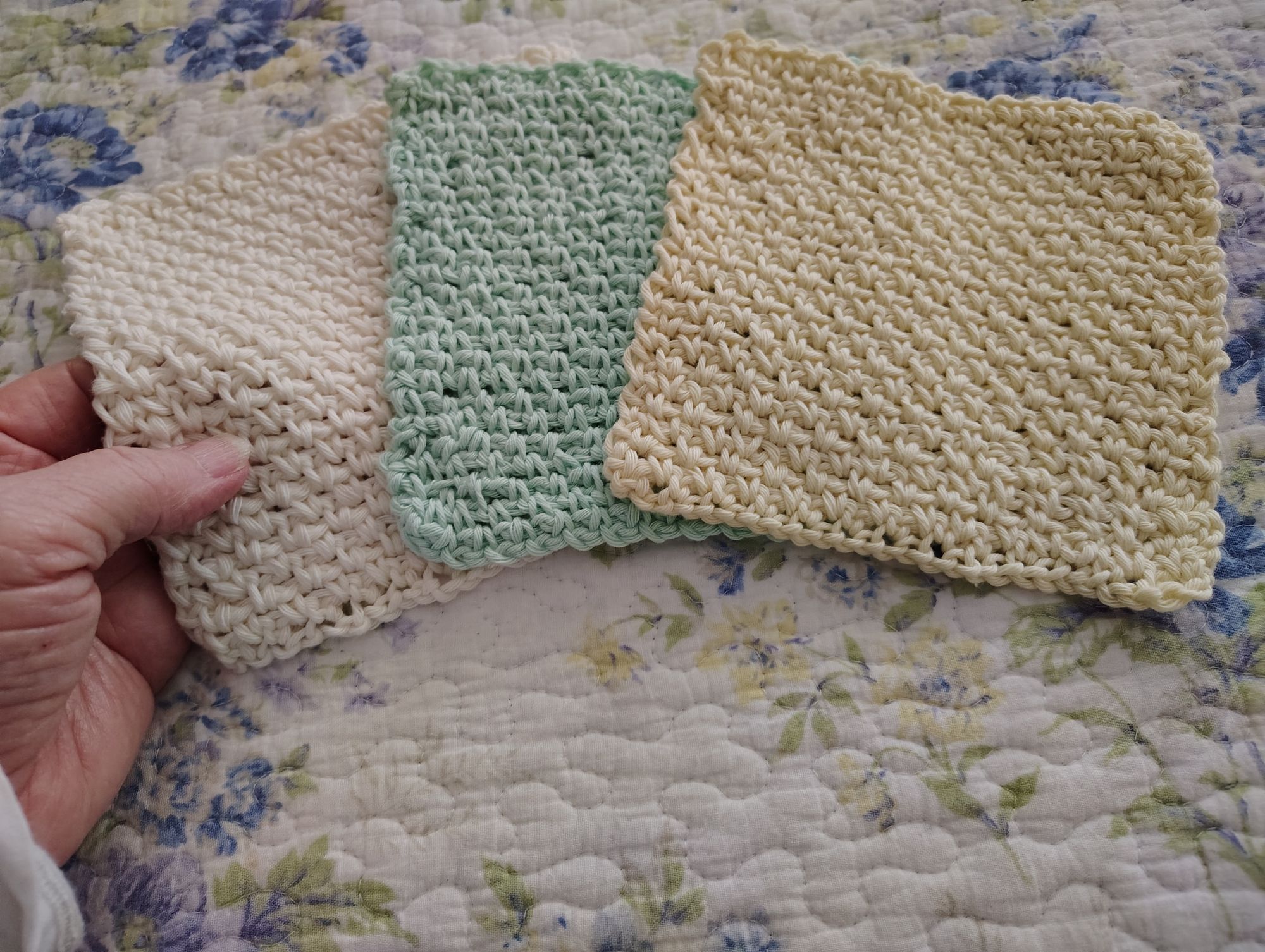 I have been crocheting baby washcloths for our great grandbaby, he is turning one year old so I made him some small washcloths he can hold on to. I used the moss stitch.