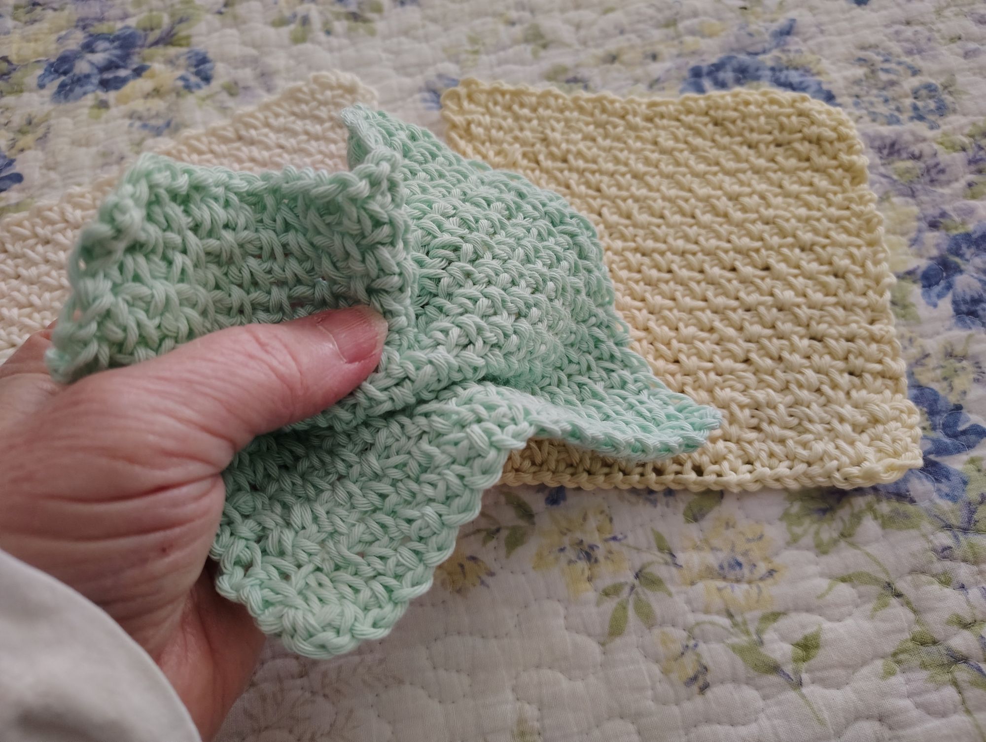 The moss stitch is a softer stitch and the yarn is a softer cotton yarn.